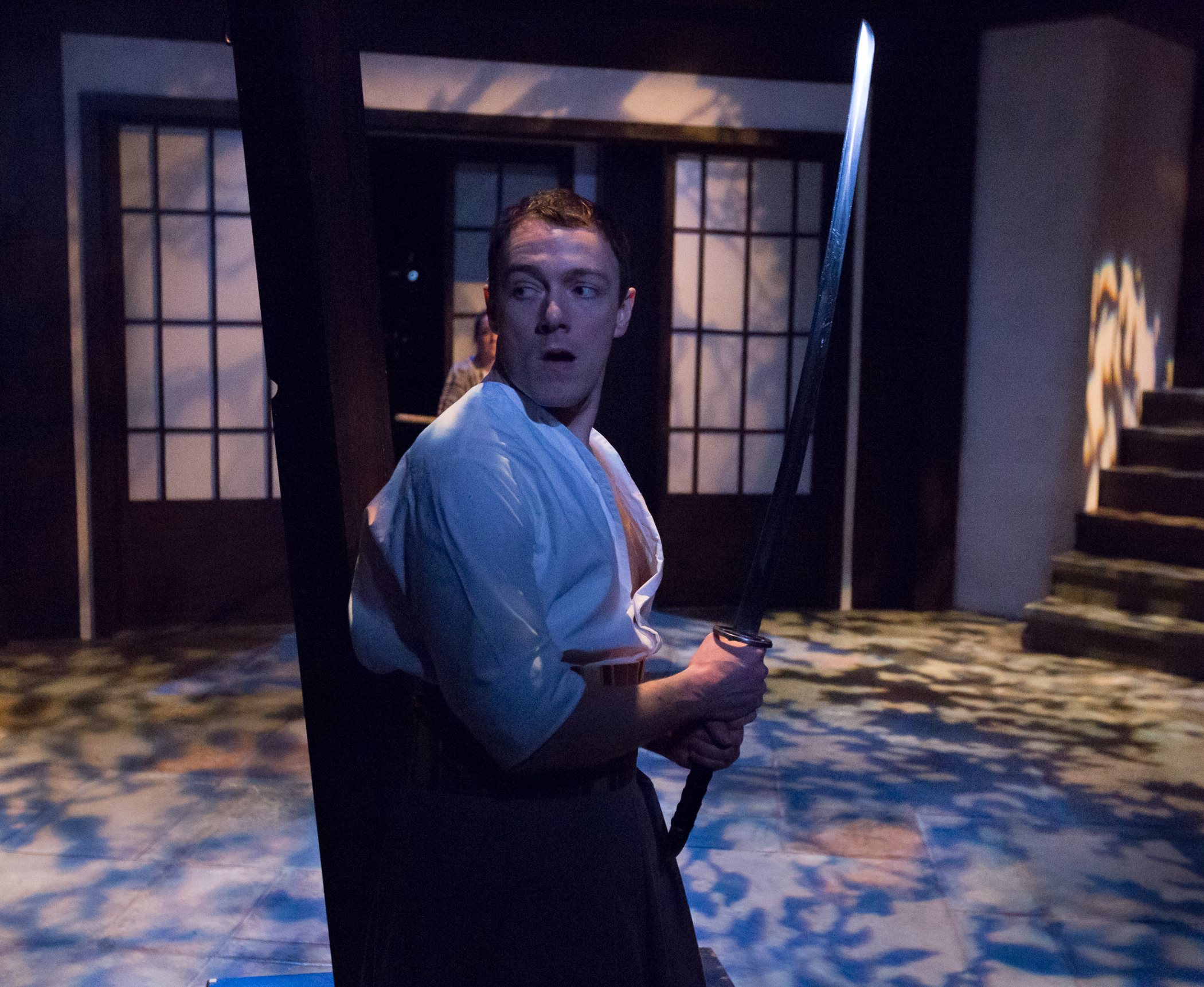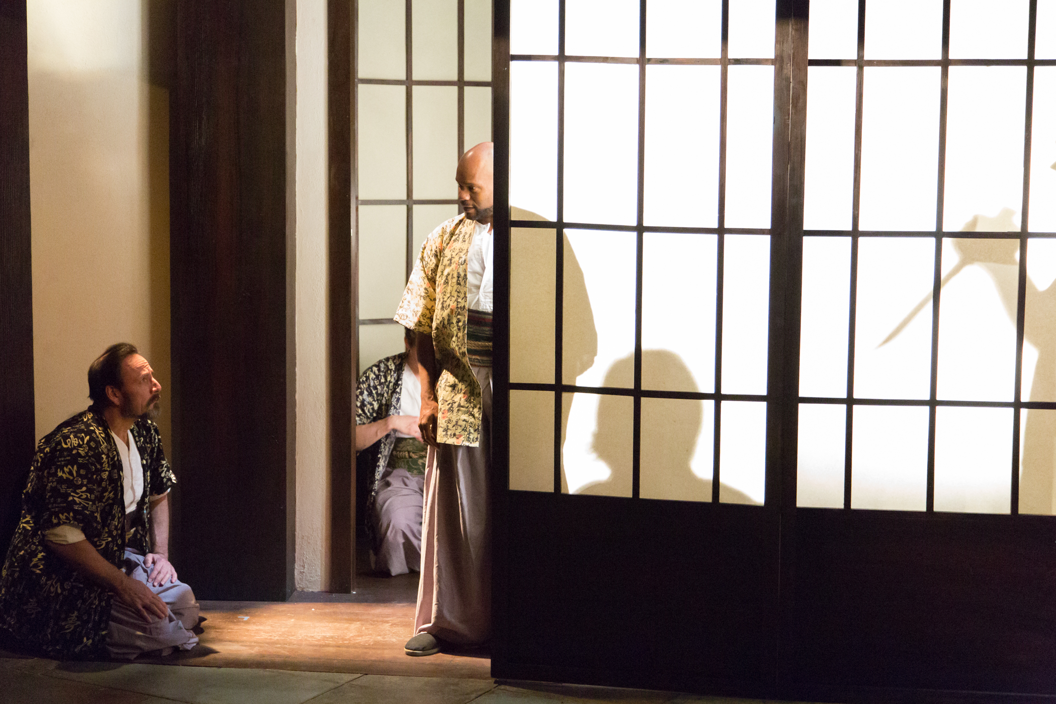 “’We wanted to get away from all of the clichés and assumptions about classical Rome, with people walking about in togas and looking like statues from antiquity,’ says artistic director Charles McMahon. ‘Our associations with that make it feel like we’re saying, ‘This is old, this is long in the past” . . . McMahon also wanted to avoid the specificity that comes with updating the play to the modern day. ‘We didn’t want to say this play is like Libya, or this play is like Central America or Russia or North Korea, because that’s not the point either. I think there’s something universal about it.‘ McMahon soon realized that the stoicism of Caesar’s Rome had strong philosophical parallels with Japan’s tradition of Zen Buddhism. ‘The ideas in this play of being detached from the results of actions and being emotionally remote from the events of the world are present in the great samurai epics. So these themes all seemed to add up to feudal Japan being a very resonant scenic and thematic environment to put the play in.'”– read Shaun Brady’s whole article here, emphasis mine